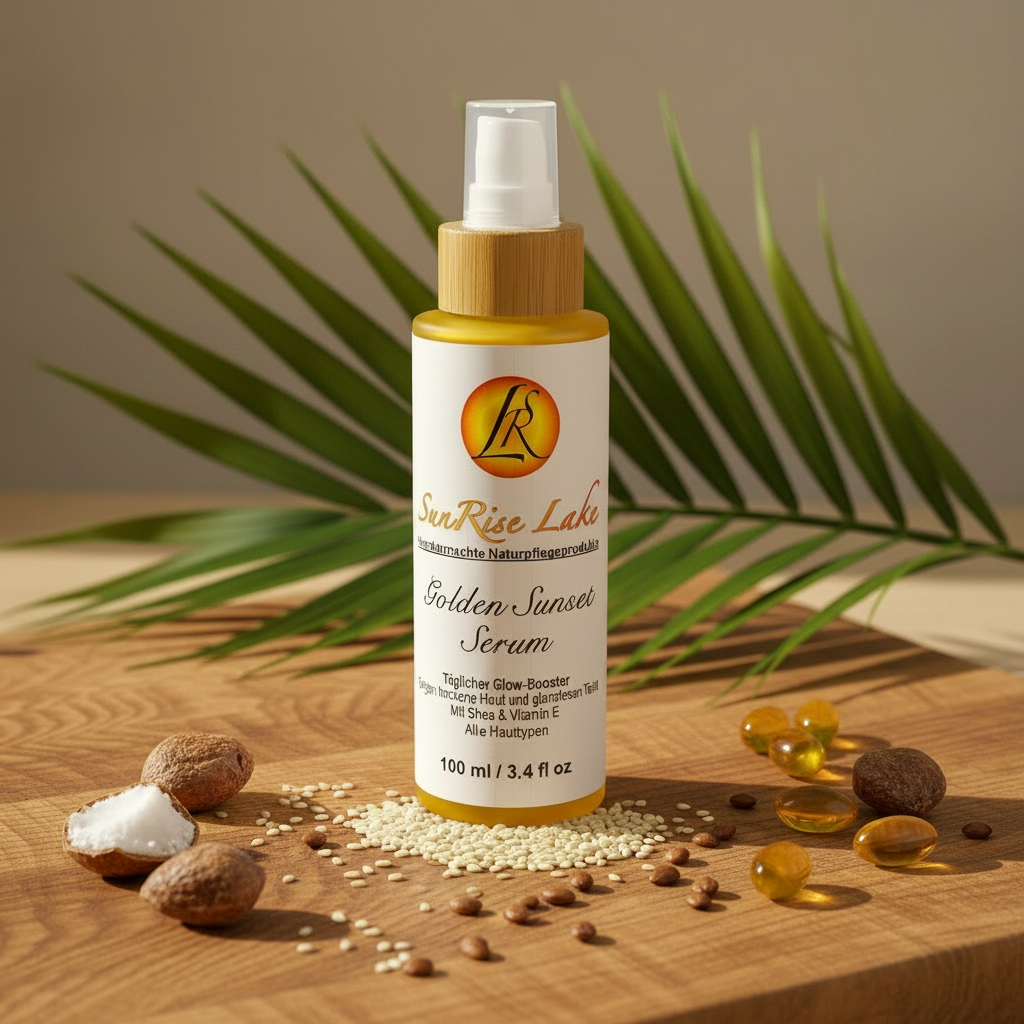Golden Sunset – natürliches Glow-Serum mit Shea-, Jojoba- & Sesamöl. Feuchtigkeit, Geschmeidigkeit & sommerlicher Touch für Gesicht, Körper & Dekolleté.